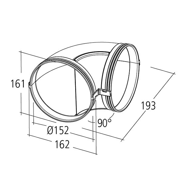 90° Rundbogen mit Muffen für Dunstabzugshauben im Abluftbetrieb.