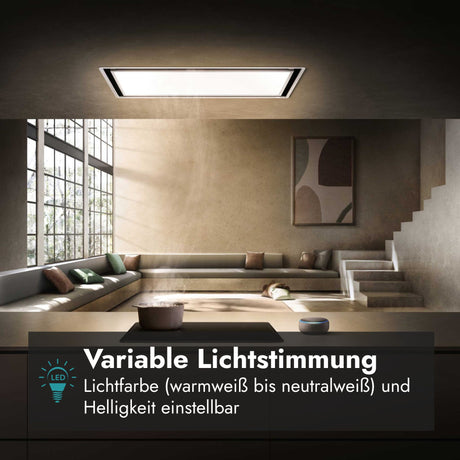 Deckenlüfter sind in einer Vielzahl von Designs und Ausstattungen erhältlich, um den unterschiedlichen Bedürfnissen und Stilen von Küchen gerecht zu werden. Viele Modelle verfügen über eine LED-Beleuchtung, die nicht nur die Kochfläche optimal ausleuchtet, sondern auch als Ambientebeleuchtung dient und so für eine angenehme Atmosphäre in der Küche sorgt.