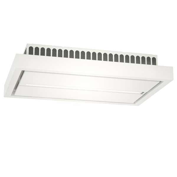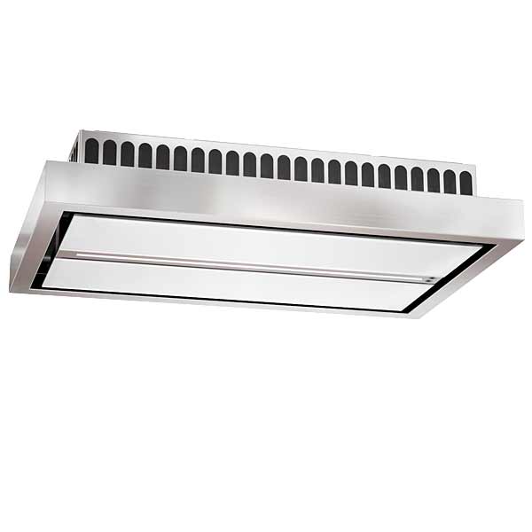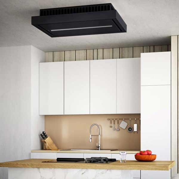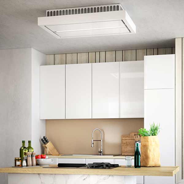 Die Bedienung der Haube (3 Normalstufen + 1 Intensivstufe) erfolgt über Touch Control an der Haube bzw mit der mitgelieferten Fernbedienung. Die Haube verfügt über Randabsaugung, was den Abzug besonders effektiv macht. Der Metallfettfilter ist innenliegend und spülmaschinengeeignet. Die Aura Deckenhaube ist in Edelstahl, Weiß lackiert und Schwarz Matt (RAL 9005) mit weißem Satinglas erhältlich.