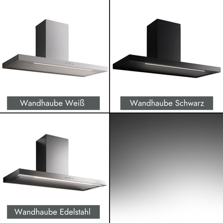 Diese Modelle werden an der Wand über dem Kochfeld montiert. Sie kombinieren starke Leistung mit stilvollem Design und sind in verschiedenen Breiten erhältlich.