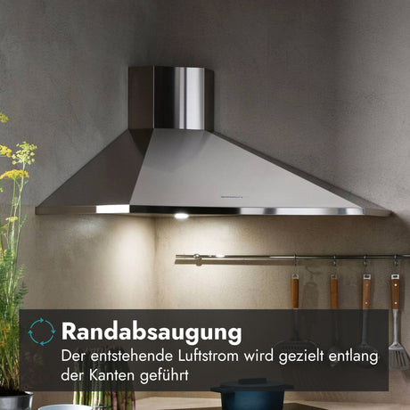 Neben ihren anderen herausragenden Merkmalen, verfügen Falmec Dunstabzugshauben auf technischer Seite auch über eine effektive Randabsaugung. Bei der Randabsaugung wird die Abluft entlang der Kanten der Haube angesaugt, was zu einer verbesserten Effizienz und besseren Ergebnissen führt.