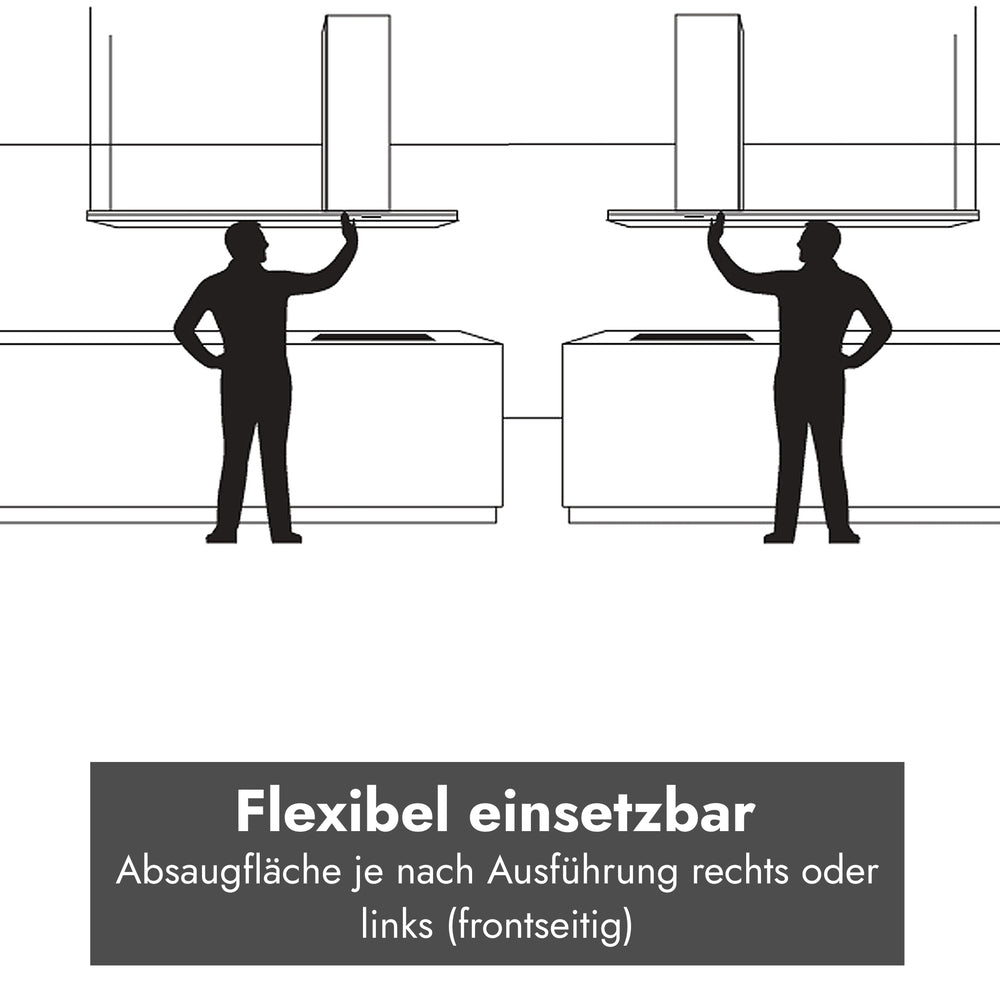Welche Varianten gibt es bei der Falmec Lumen Inselhaube 175 NRS – Schacht links oder rechts?