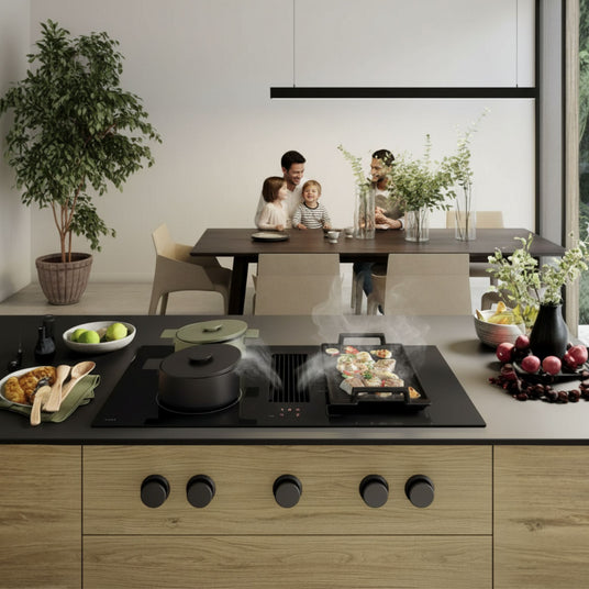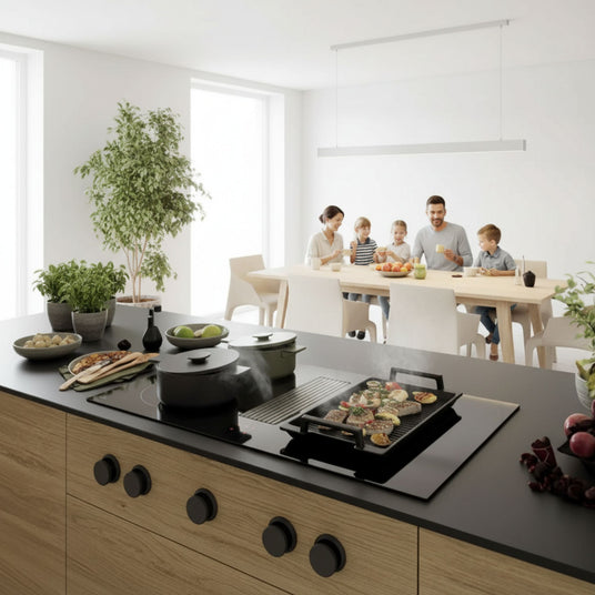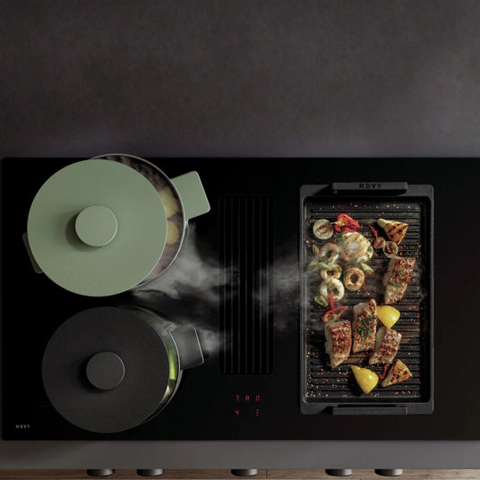 Die Novy Easy Prestige 90 definiert Kochkomfort neu, indem sie ein leistungsstarkes Induktionskochfeld nahtlos mit einer effizienten Kochfeldabsaugung vereint.