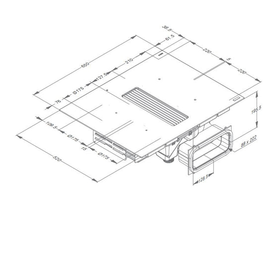 - Luftausgang: 222x89 mm
